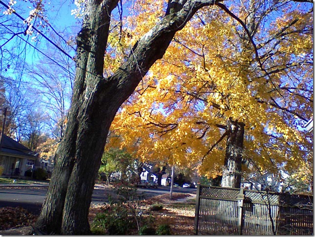 ….the neighborhood is filled with these huge yellow Maples—like the one next door—which are the last to turn and drop their leaves. I hope they stay put for a while longer. So pretty!